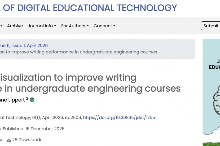 We are excited to share a recently published paper from our research lab that explores innovative approaches to supporting technical writing skills in engineering education, particularly in the context of… Read More »New Publication from Our Lab: Enhancing Writing Performance in Undergraduate Engineering Courses Through Knowledge Visualization